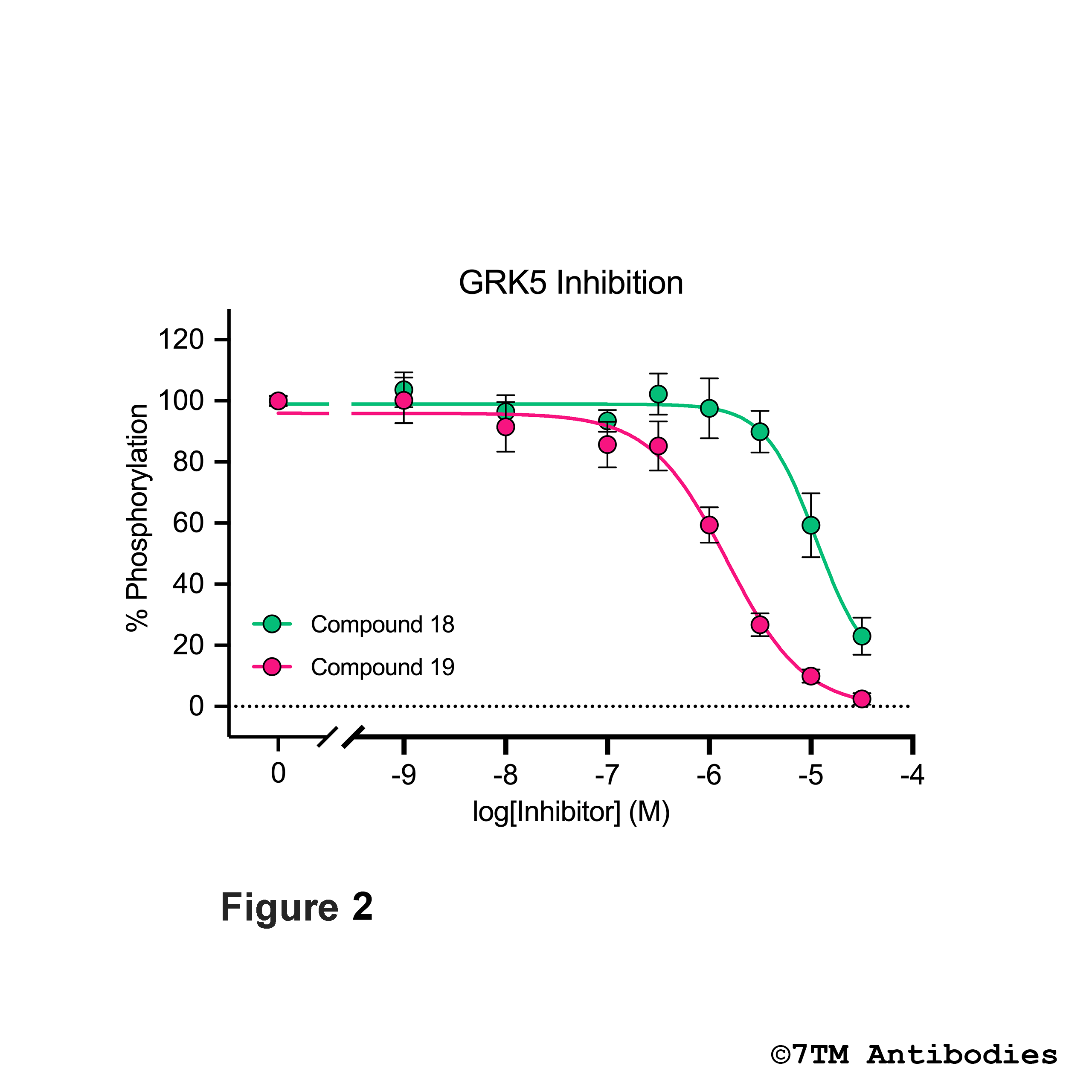 Figure 2. Inhibition of agonist-induced pT360/pS364-β2 adrenergic receptor (β2) phosphorylation by GRK5/6 inhibitor (Cmpd 18).