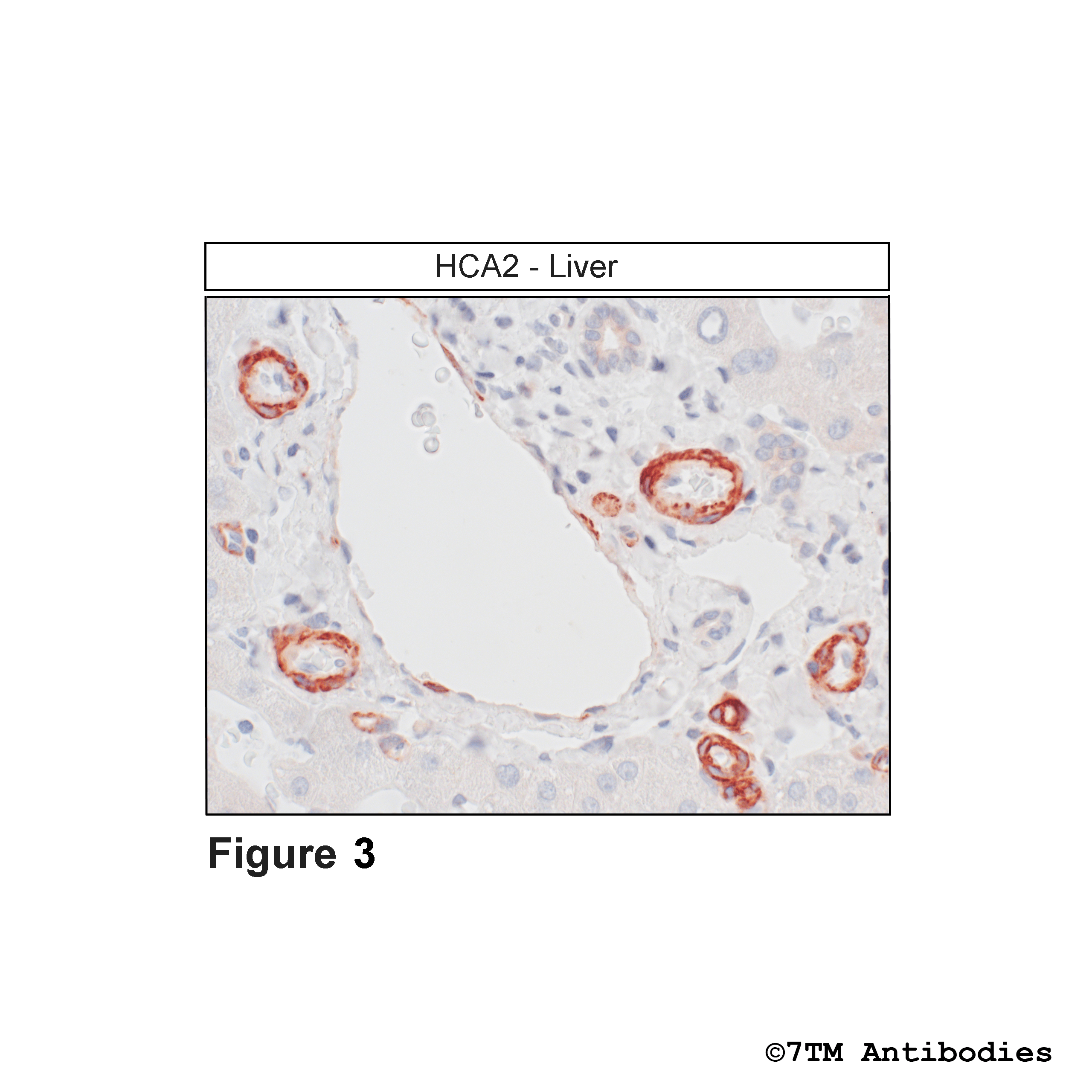 The non-phospho HCA2 receptor antibody is directed against the distal end of the carboxyl-terminal tail human HCA2 receptor. It can be used to detect total HCA2 receptors in Western blots independent of phosphorylation. It can also be used to isolate and enrich HCA2 receptors from tissue lysates. It also detects HCA2 in cultured cells and tissue sections by immunohistochemistry.